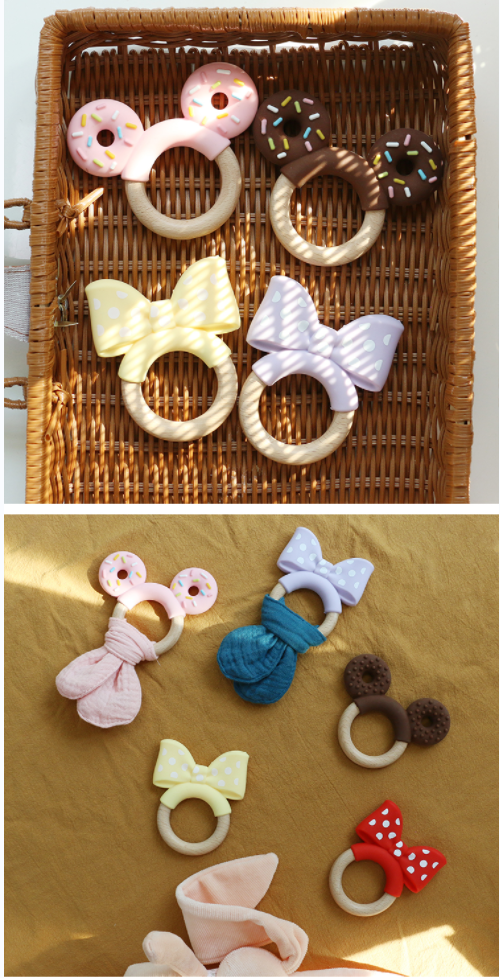 We offer various designs for our teether, and we also have the option for custom designs. You can choose the design that best suits your baby's preferences.